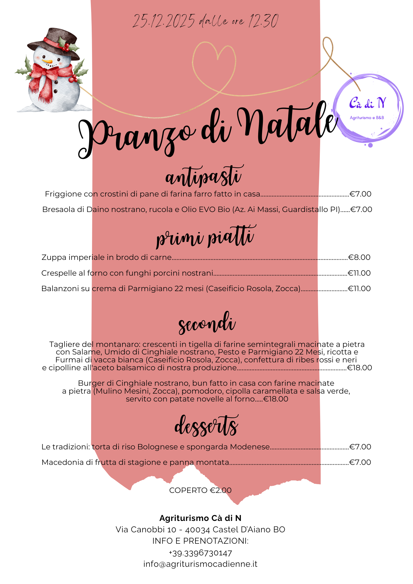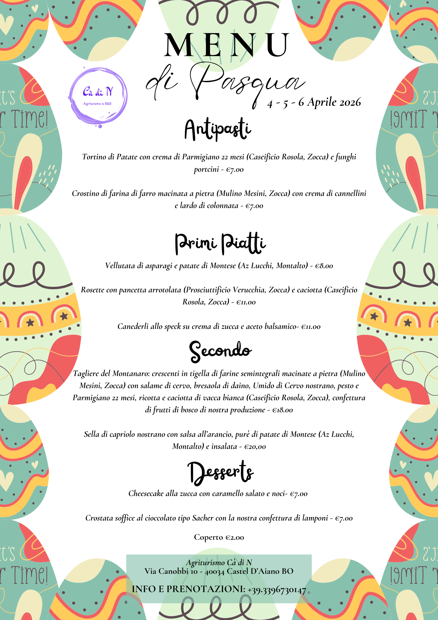 Cà di N prende il nome da Nadia e Novella, le nostre madri che ci hanno insegnato l'arte della cucina e dell'ospitalità.